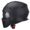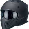 De Vito Bruzano Mat zwart is een zeer sportieve helm. Hij is door zijn afneembare kinstuk zowel als integraalhelm als jethelm te dragen.